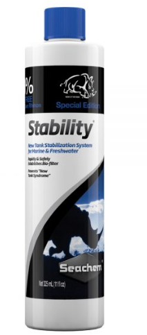 Stability® will rapidly and safely establish the aquarium biofilter in freshwater and marine systems, thereby preventing the #1 cause of fish death: "new tank syndrome". Stability® is formulated specifically for the aquarium and contains a synergistic blend of aerobic, anaerobic, and facultative bacteria which facilitate the breakdown of waste organics, ammonia, nitrite, and nitrate. The bacteria employed by Stability® are non-sulfur fixing and will not produce toxic hydrogen sulfide. Stability® is completely harmless to all aquatic organisms as well as aquatic plants, thus there is no danger of over use.