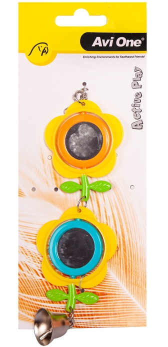 This string of floral shaped mirrors with bell is sure to entertain your bird!
