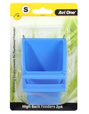 The Avi One High Back Bird Feeders helps reduce the amount of seed and water spilt outside of the cage with its high back feature. The perch on the feeder provides a secure holding for birds whilst feeding and drinking.