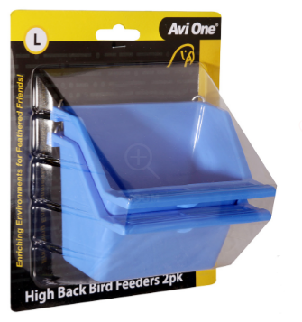 The Avi One High Back Bird Feeders helps reduce the amount of seed and water spilt outside of the cage with its high back feature. The perch on the feeder provides a secure holding for birds whilst feeding and drinking.