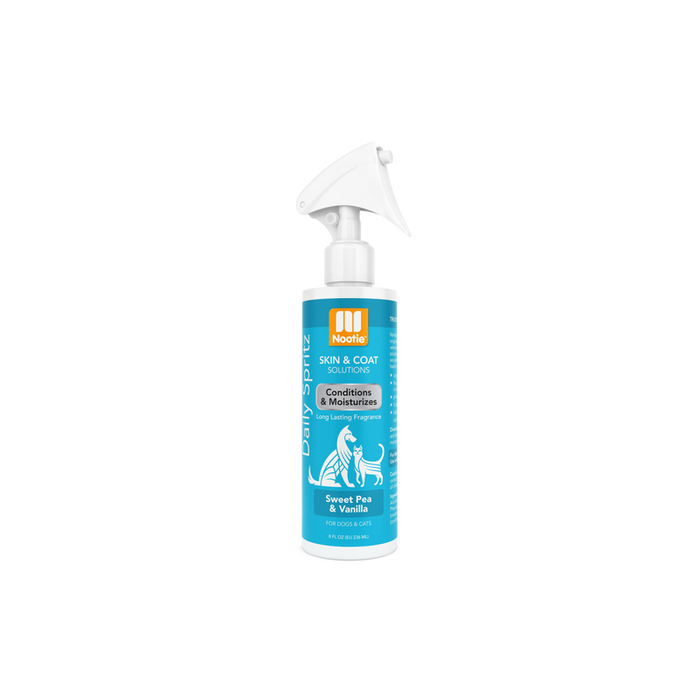 The joyful sweet floral scent of our Sweet Pea & Vanilla long-lasting fragrance will keep your dog or cat smelling great after and between baths. Nootie Daily Spritz is gently formulated to condition your pet’s coat and moisturize their skin with natural plant-based glycerin.