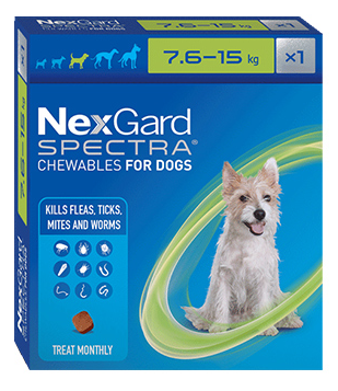NexGard Spectra Dog Flea Tick & Worm Chewable 7.6-15kg 1pk