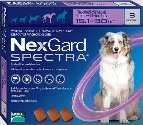 NexGard Spectra Dog Flea Tick & Worm Chewable 15.1-30kg 3pk