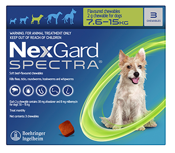 NexGard Spectra Dog Flea Tick & Worm Chewable 7.6-15kg 3pk