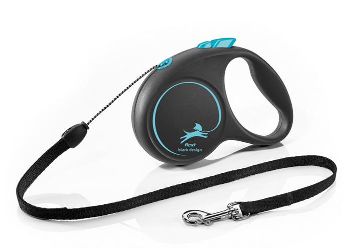 - Flexi Black Design - 5m Cord (S) Retractable Leash Light Blue