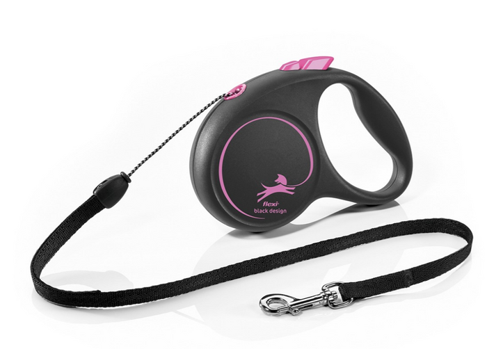 - Flexi Black Design - 5m Cord (S) Retractable Leash Pink