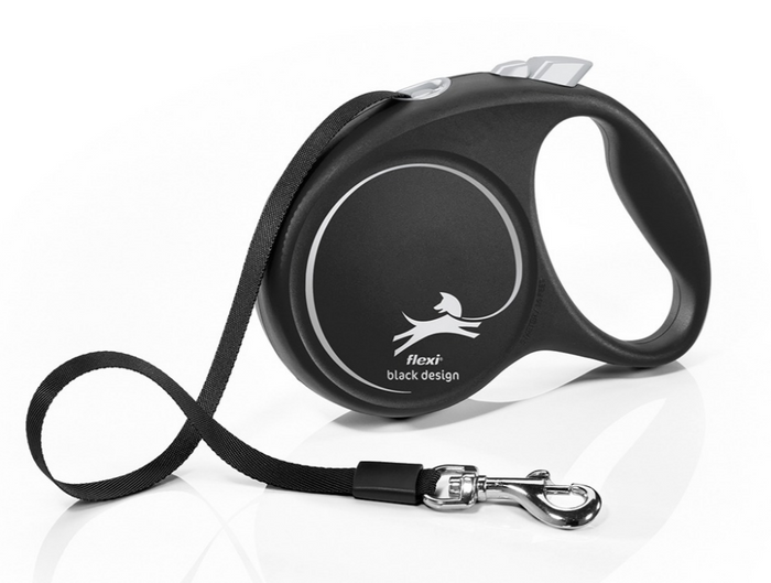 Flexi Black Design - 5m Tape (L) Retractable Leash Silver