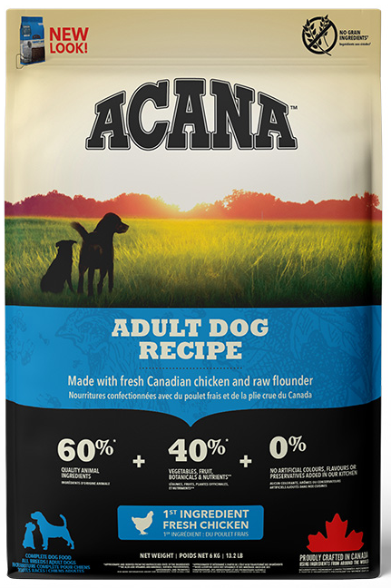 All dogs have descended from the grey wolf and just like their wild ancestors, they require a protein-rich diet for peak health and wellbeing. That’s why ACANA™ Adult Dog is made with 60% quality animal ingredients like fresh free-run chicken and raw hake, delivered in Wholeprey ratios. This nutrient-dense recipe is balanced with 40% fresh fruit, vegetables and botanicals to help support your dog’s health and vitality every day.